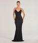The long mermaid dress features a sleeveless v-neckline. adjustable spaghetti straps. an open-back design accented with multiple spaghetti straps. and a beaded embellished pattern. Complete the formal outfit with a rhinestone clutch.