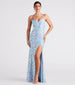 Glistening sequins dance across the Raquel formal dress to make a stunning appearance at dances. weddings. and banquets! She features a sleeveless sweetheart neckline. spaghetti straps that lace up on the back. a built-in padded bust with underwire. and a form-hugging mermaid silhouette with a sultry front slit and floor-length hem. The formal dress is composed of a sequin-embroidered mesh fabric with a stretchy knit lining. Style with a collar necklace and heels to complete the look!