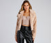 Bring the edge this season in this faux fur jacket. It features a collared neckline. long sleeves. an asymmetrical front zipper. side pockets. and a cropped hem. This jacket is composed of lined faux fur fabric and has a form-hugging fit. Complete the look with a bodysuit.