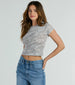 Hit refresh with this abstract print mesh crop top to pair with your favorite bottoms! Featuring cap sleeves and a crew neckline. this fitted crop hem pairs perfectly with an abstract swirl print on sheer mesh fabric. Complete the look in high-rise jeans for casual plans.