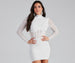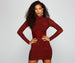 Step out with a formal dress that enchants with stunning details for your formal event. Renata features a mock neck. long sleeves. a sheer illusion waist with flexible boning. sparkling heat stones throughout. and a mini-length silhouette. The dress is composed of a partially lined mesh fabric that offers a form-hugging fit with a moderate stretch. Complete look with door knocker earrings.