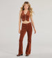 Dive into retro vibes with these chic corduroy high-rise flare pants. Featuring a flattering fit and classic pockets. they're your go-to for effortless style.