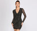 The Ria dress brings the sparkle to your special evening! Shimmer from the moment you enter the room in a dress that showcases your glamorous taste. The Ria dress features glitzy heat stones. sheer mesh long sleeves to show off a hint of skin. and a curve-hugging mini-length silhouette. Complete your special evening outfit with chrome heels for maximum shine.