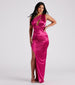 The Ronnie formal satin dress is worthy of the red carpet! Make jaws drop at galas. charity auctions. and dinners showcasing your sultry elegance. She features a sleeveless. one-shoulder neckline. a tank-style strap. an asymmetrical bust cutout. a pleated empire waist. and a form-hugging. slim silhouette with a high-cut side slit along the floor-length hem. The formal dress is composed of lined silky satin fabric with minimal stretch. Style with linear earrings and a bracelet to complete the look.