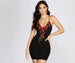 Dress up the night with some rose embroidery! This romantic mini dress is perfect for impressing bae for your next date night. The dress features a plunging v neckline and a gorgeous rose applique that adorns the bodice. The rose embroidery complements the neckline as it cascades down the center of the bodice in a flattering v-shape. Complete your date-night outfit with sleek stiletto heels and dangling earrings.Â
