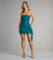 For when sleek just isn't enough. This strapless bodycon mini dress keeps it polished in the front and playful on the side with a cascading ruffle detail. perfect for date nights and GNOs!