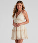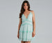 Make a ruffle at the party in this chiffon babydoll dress featuring a sleeveless V-neckline. adjustable spaghetti straps. criss-cross back. flowy silhouette. and a ruffled trim throughout. Composed of a chiffon woven fabric with an inner skirt lining. Perfect for styling with a mini tote bag.