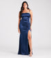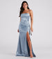 You'll be a stunning sight in the Sandra formal dress at banquets or as a bridesmaid! She features a sleeveless cowl neckline. adjustable spaghetti straps for a customizable fit. a corset-style bodice. flexible boning. a mermaid silhouette. and a front ruched seam atop a skin-flaunting high slit along her floor-length hem. The formal dress is composed of a lined silky satin fabric with a sheen effect and moderate stretch. Style with a fab shawl and a tiara to complete the look!