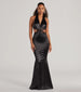 Make your jaw-dropping entrance in the Scarlett satin formal dress at galas or black-tie events! Made from smooth satin fabric for a luxurious feel. this formal dress will feel so exclusive and chic. She features a halter V-neckline and button closures. lace trim open back and cutout sides add a sensual element. while the mermaid silhouette and floor-length hem exude elegance. Complete the look with teardrop earrings and heels for an undeniable glam.