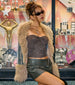 Serving vintage glam with a rockstar twist. This faux fur trim denim jacket is oversized. plush. and impossible to ignore—the perfect throw-on for concerts. nights out. or everyday styling.