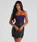 Catch sparkles not feelings! This sleeveless mesh bodysuit features a square neck. bungee spaghetti straps. an underwire bust for support and ruching. all-over heat stone embellishments. a thong-cut bottom. and dual snap-button closures. Complete the look in a cropped jacket and jeans.