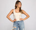 Make a stylish scene with a cropped tank that keeps your look oh so chic! The tank features a scoop neckline. contrasting seams. and a cropped hem. The tank top is composed of a ribbed knit fabric that offers a relaxed fit with a moderate stretch. Complete look with a mini skirt.