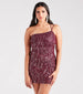 Shake it up on girl's night in this flirty sequin mini dress sure to capture all the attention! The short mini dress features a sleeveless one-shoulder neckline. dual adjustable spaghetti straps. and a bodycon silhouette showcasing an all-over fringe on lined mesh fabric. Complete the look in stiletto heels.