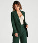 Show them your trendsetter status in this structured blazer! It features a lapel collar. shoulder pads. long sleeves. a double-breasted button closure. and a fitted silhouette. Style this blazer with the matching wide-leg pants for a chic ensemble.