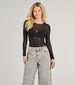 A sheer glitz long sleeve beaded rhinestone crop top that dazzles with rhinestones and mesh. Fitted sleeves and a crew neckline make it a must-have for your glam nights out.