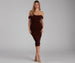 Romantic sparks fly in the Sheila formal dress for your next evening out! She brings classy sophistication in an off-the-shoulder drape neckline on the corset-style bodice with flexible boning to flaunt your curves. Her fitted. empire waist shapes the midi length hem with a back slit and zipper closure. The formal dress is composed of a crepe-lined fabric with a moderate stretch. Complete your look in statement earrings and satin heels.