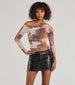 Shimmering Allure Abstract Print Glitter Mesh Top