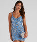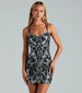 Sparkle and shine all night in this sequin mini dress perfect for a dressy event. GNO. or date night! Featuring a sleeveless V-neckline. dual adjustable spaghetti straps. a cross-back strap design. a high waist seam. a bodycon silhouette to flaunt your figure. and a mini-length hem. The lined mesh fabric features gorgeous sequin embroidery in an intricate scroll design. Style this mini-length dress with statement earrings and heels.