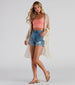 Chill along the shore looking so trendy in this crochet woven kimono featuring flowy. long sleeves with cuffs and a sheer longline design. Complete the look in a crop top and denim shorts.