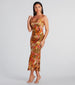 Take your look to the next level with this gorgeous floral midi dress. With its cowl neckline. adjustable spaghetti straps. A-line silhouette. and a painted floral print on woven fabric. this midi-length dress will make you feel stylish and fine! Complete the look in sleek stiletto heels for a semi-formal soiree.