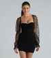 Feel simply lovely in the crepe mini dress to add a touch of romance to your wardrobe! It features sheer mesh peasant long sleeves with a rose velvet pattern and elastic cuffs. a sweetheart neckline. a built-in padded bust with underwire and rosette appliques. plus a flattering bodycon silhouette and mini-length hem. Complete the look in platform heels and a clutch for a dinner party or dressy date night!