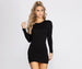 Get a simply perfect 'fit with this basic knit mini dress! With its fitted long sleeves and curve-hugging silhouette. this stretchy knit dress is oh-so-flattering. A definite for your next date night. keep it casual with a pair of chunky sneakers or glam it up with some bold block heels.