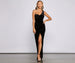 Make an elegant impression with a formal velvet dress that elevates your evening outfit. The dress features a one-shoulder neckline with a tank strap. a sweetheart bust. heat stones on the bodice. and a wrap silhouette with a high side slit. The dress is composed of a lined velvet fabric that offers a form hugging fit with a moderate stretch. Complete look with rhinestone heels.