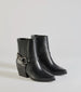 Show off a sleek strut in these moto western ankle booties featuring a pointed toe. a trendy buckle strap accent. an inner zipper closure for effortless styling. and a stacked block heel. Pair with your fave shoulder bag.