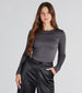 This classic long sleeve top. crafted with rib knit seamless fabric. is designed to fit and flatter with a cropped hem and crew neckline. Enhance your wardrobe with this basic crop top styled with best-selling bottoms for a chic outfit!