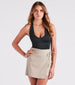 Add this elevated basic bodysuit to your everyday lineup! It features a sleeveless plunge halter V-neckline. a partially open back. a thong bottom. and a form-hugging fit. The double-lined stretchy knit fabric offers a seamless design and has an ultra-soft buttery feel. Complete the look in a flirty woven skort and heels.