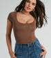 A flattering wardrobe staple. this smooth bodysuit has a buttery soft feel to provide a seamless look. With chic short sleeves. a scoop neckline. and a form-hugging fit that accentuates your figure. this bodysuit elevates your everyday style. Complete the look in high-rise denim jeans and hoop earrings for any occasion!
