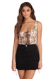Make your festival 'fit a fierce one with this snake print bodysuit! It has a sleeveless bodice. thin shoulder straps. a scoop neckline. and a thong bottom with snap button closures. The garment is composed of a knit fabric with plenty of form hugging stretch.