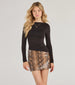 An elevated basic. this knit top features a boat neckline. long fitted sleeves. and a mid-length asymmetric hem with a form-hugging fit. Style with a mini skirt and knee-high boots for a chic dinner date vibe.