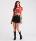 Serve so much sass in these dance-ready faux suede hot shorts featuring a high-rise faux leather waist. a tiered faux suede fringe design with rhinestone studs. and a knit shorts lining. Style with a graphic tee and cowboy boots for a country bar!