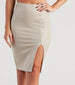 So posh and chic. this croc-embossed midi skirt is perfect for fall. It features a high-rise waist. a mid-calf-length hem. a form-hugging fit. and a stylish front slit to showcase some leg. Complete the look with a cropped sweater and mules.