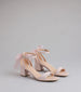 • Closed ankle. adjustable ankle strap. rhinestone buckle closure