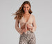 Let this mesh crop top take you somewhere sweet to show it off! The top features sheer peasant long sleeves. a plunge V-neckline. and a flirty tie-front hem. Style with sassy high-waist pants for a wine night with the girls!
