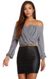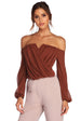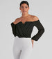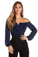 Keep it sophisticated in a chiffon top that is perfect for creating a trendy workwear look or a night out with friends. This long-sleeve crop top features a flattering off-the-shoulder neckline and a wired V-shaped bust with pleated detailing. This elegant going-out top is made of lightweight chiffon fabric and is lined with a stretchy knit fabric that shapes your curves. Style this long sleeve top with high-waist trousers pants with strappy platform heels for an elevated night-out look.