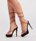 These eye-catching stiletto heels will add a spark of glamour to your night-out look! They feature an open almond toe with dual asymmetric straps. a platform sole. a tall stiletto heel. and a spiral strap design that starts at the heel and wraps around the leg. The straps feature mini rhinestone embellishments for a stunning shine. Style with a sleek faux leather clutch.