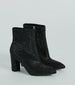 Activate sparkle mode with these glam rhinestone block heel ankle boots perfect for a glitzy night out! They feature an above-the-ankle height. an inner zipper closure. a pointed toe. a block heel. and all-over varying-sized rhinestone embellishments for a flashy glam vibe. Style these booties with a metallic clutch!
