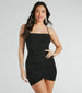 Become an expert in sparkling with this glitter mini dress for a night on the town! Designed with a stretchy glitter knit fabric. you'll shine bright in a flattering square neckline and spaghetti straps that lace up at the alluring open back. This ruched bodycon dress will hug your curves in all the right places. The faux wrap asymmetrical mini-length hem adds a touch of playfulness to this show-stopping piece. Complete the look in bold earrings and heels to have all eyes on you!
