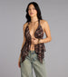 A little wild. a little glam—this halter top was made for making an entrance. The plunging neckline and draped handkerchief hem bring effortless drama. while the open back keeps it flirty and free.
