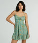 Spring into your seasonal closet by adding this floral skater dress! It features a sleeveless V-neck. adjustable spaghetti straps. a ruched bust with tie-front detail. and a fit-and-flare silhouette with a short ruffled hem. The dress is composed of chiffon fabric with a stretchy knit lining. Complete the look in trendy wedge sandals and a bracelet.