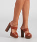 How can high can you stack your style up? These platform mules are major game-changer they feature an almond toe. stacked platform sole. and dual straps on faux leather material. Complete the look in a breezy jumpsuit for a weekend getaway.