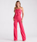 Steal the show when you step out in this crepe jumpsuit perfect for a rehearsal dinner or a dressy party! It features a strapless neckline with a statement bow and a flattering wide-leg silhouette. Complete the look with an envelope clutch and earrings.