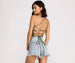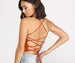 Step up your crop top game in this cute lace-up for a fab day out. The crop top features a square neckline. a cropped hem. and a bold open back with lace-up ties to create a sexy design. Complete look with your favorite high waist jeans and a chic Panama hat.