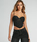 Get stunned by this luxe bustier to showcase your inner glam goddess! Perfect for birthdays or concerts. this bustier dazzles with a display of rhinestone embellishments on sheer mesh fabric that ups the sultry factor. Designed with a darling sweetheart neckline. adjustable straps for a customizable fit. a built-in underwire padded bust that eliminates the need for a bra. and a sexy sheer bodice with flexible boning to snatch your figure along the cropped hem. Complete the look in a fabulous mini skirt and lace-up heels!