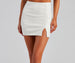 Show off curves with a mini skirt that flatters and stuns! The skirt features an elastic high-rise waist. a bodycon fit. and a sleek high-side slit. The skirt is composed of a lined faux leather fabric that offers a form-hugging fit with a moderate stretch. Complete look with a bustier.