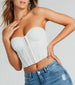 Captivate them with your stunning looks in this floral chiffon corset top! Designed with a woven fabric with a chic floral chiffon burnout pattern. this top will give your look a sweet and sultry allure. The strapless sweetheart neckline features padded cups with structured underwire. leading to flexible boning inserts and hook and eye closures. The back has a partially smocked design for added stretch. The fitted. angled. and cropped hem will create a snatched silhouette. Style this corset top with a satin skirt and mules!