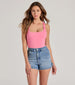 Create the perfect summer date night look with this sleeveless bodysuit! Made with a double-lined stretchy smooth knit fabric. this form-hugging bodysuit boasts a square neckline and shoulder straps for a sleek silhouette. The stunning cross back with cutout adds a touch of boldness. and the snap button closure offers a secure fit. Complete the look in denim bottoms and sandals.